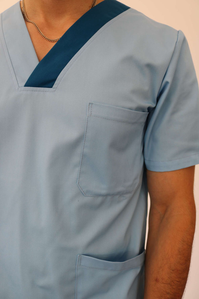 Túnica com contrastes, contem 3 bolsos de chapa.